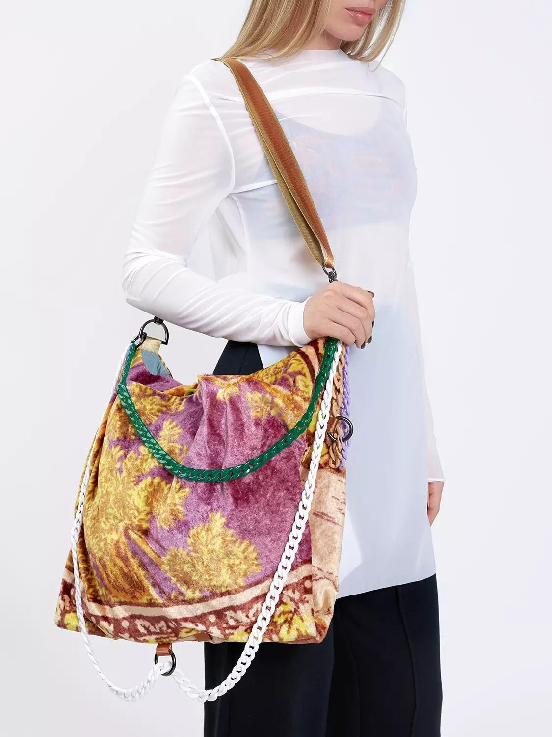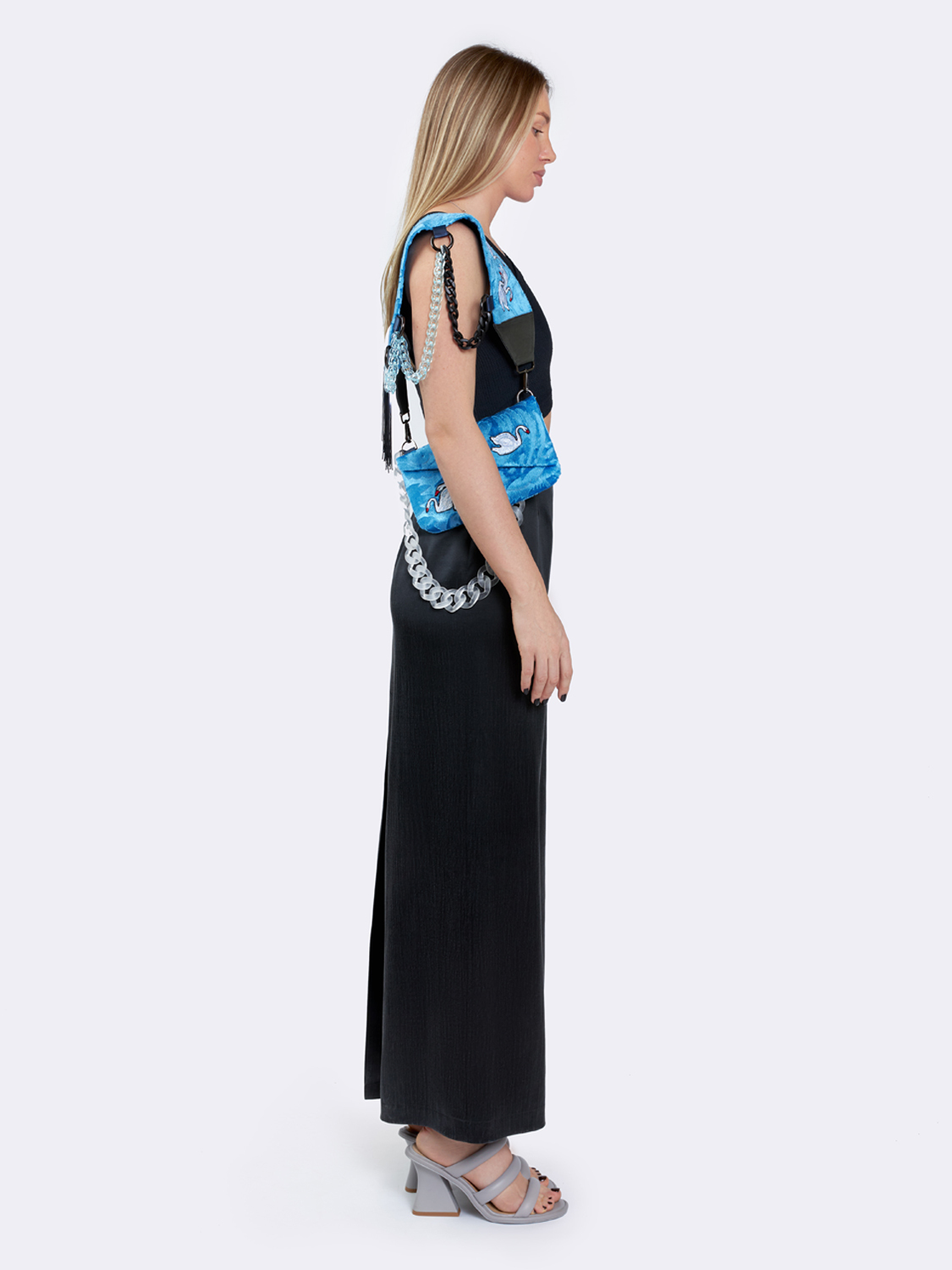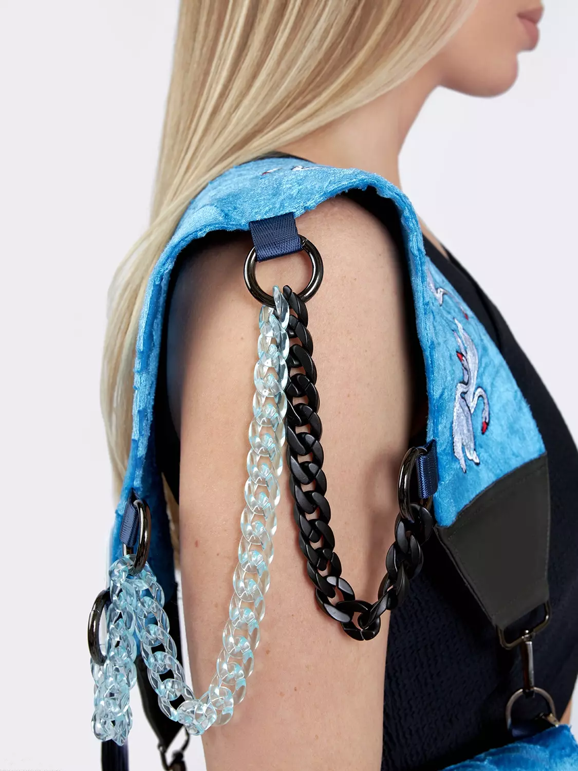Ремень для сумки с цепочками и вышивкой "Лебеди"