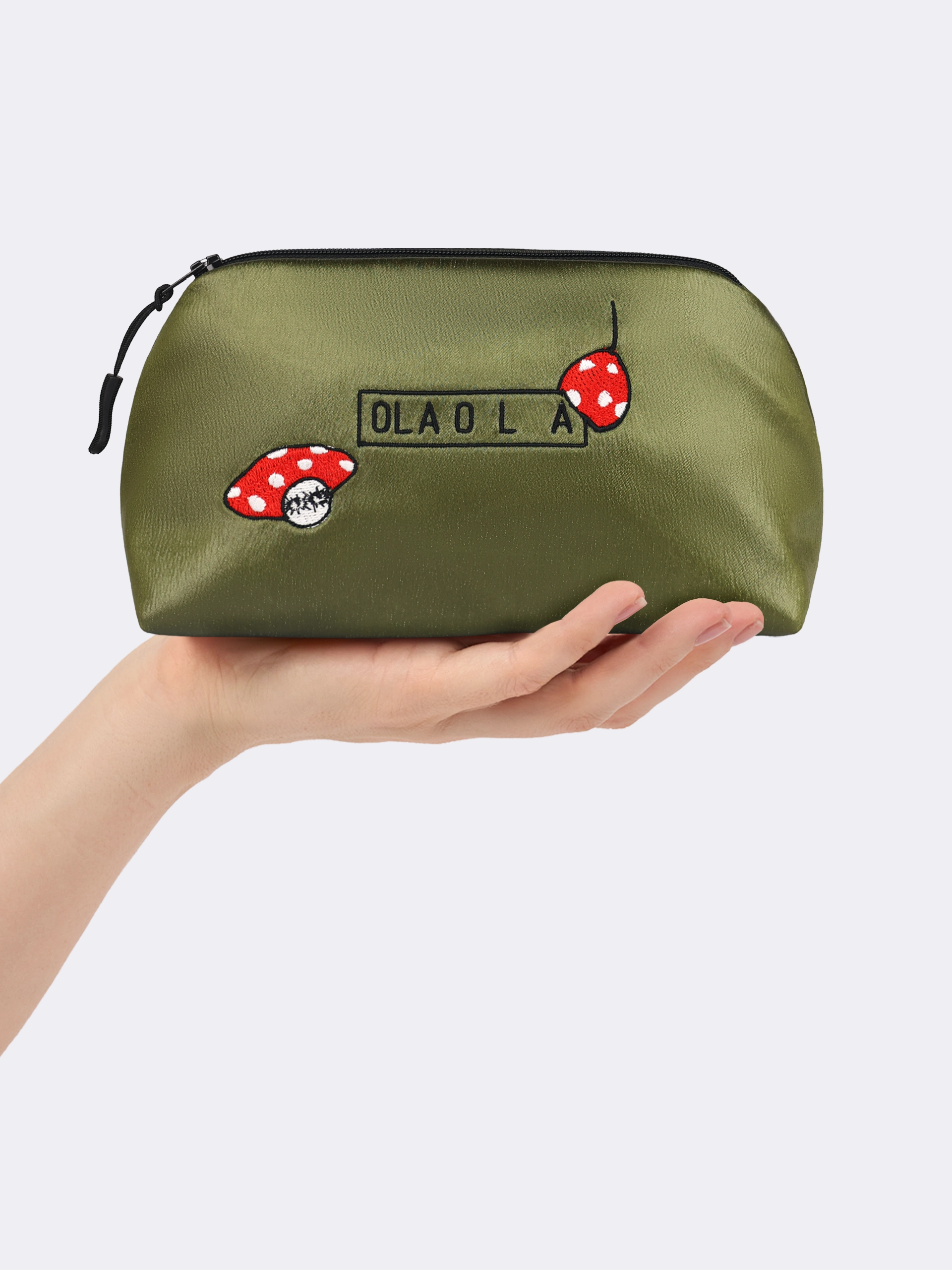 Косметичка на молнии с одним отделением. Выполнена из плотной атласной ткани с вышивками коллекции FW’25-26 в коллаборации с Владимиром Григом. На подкладе. Размер: 20х10 см