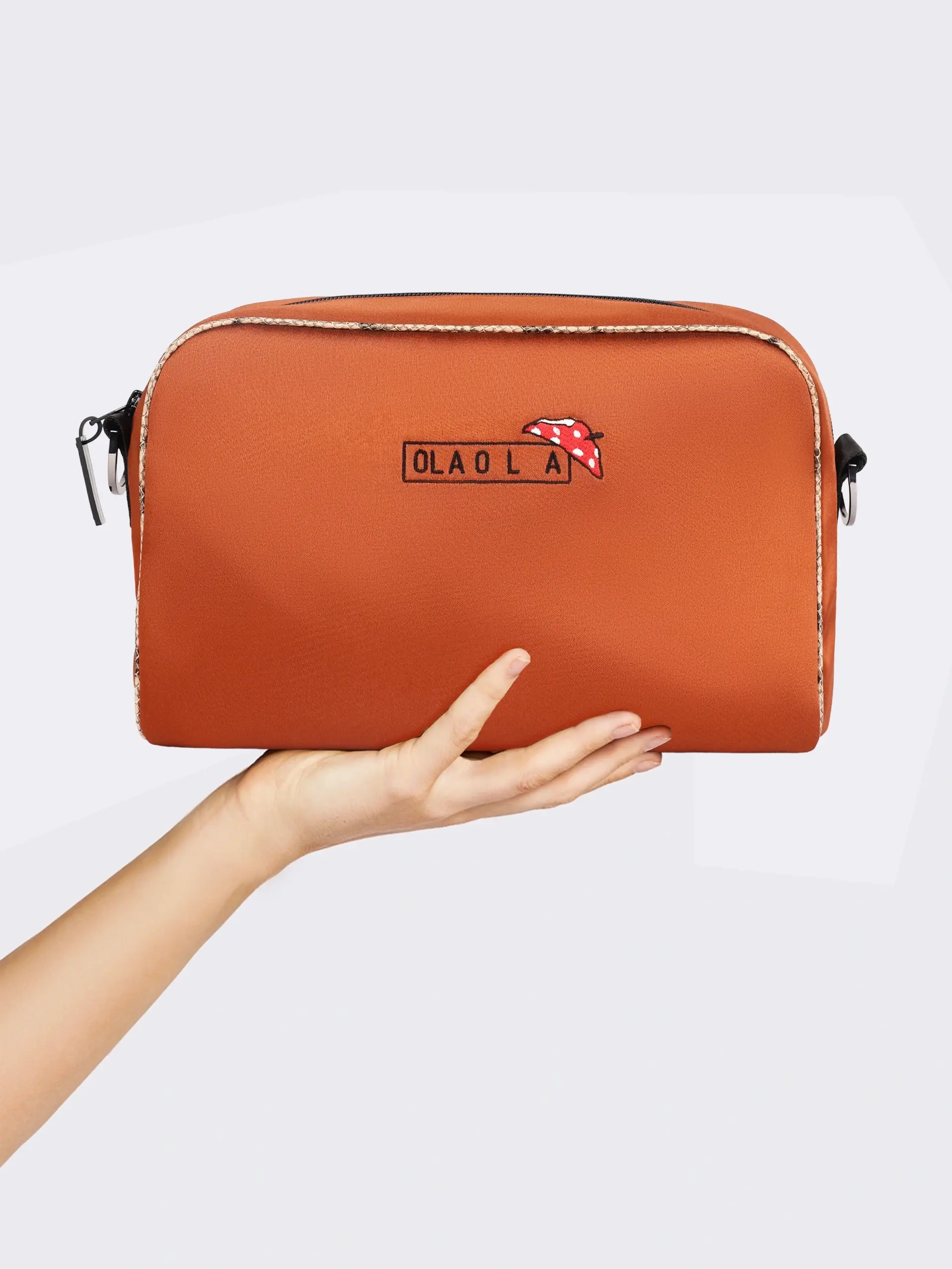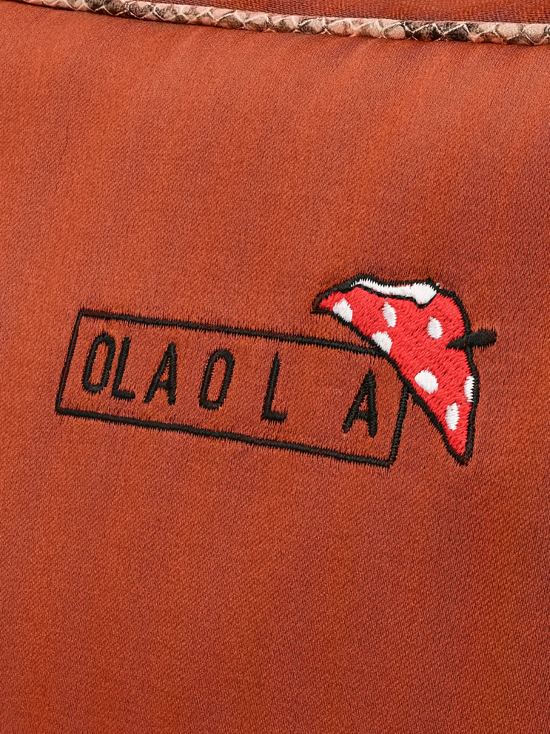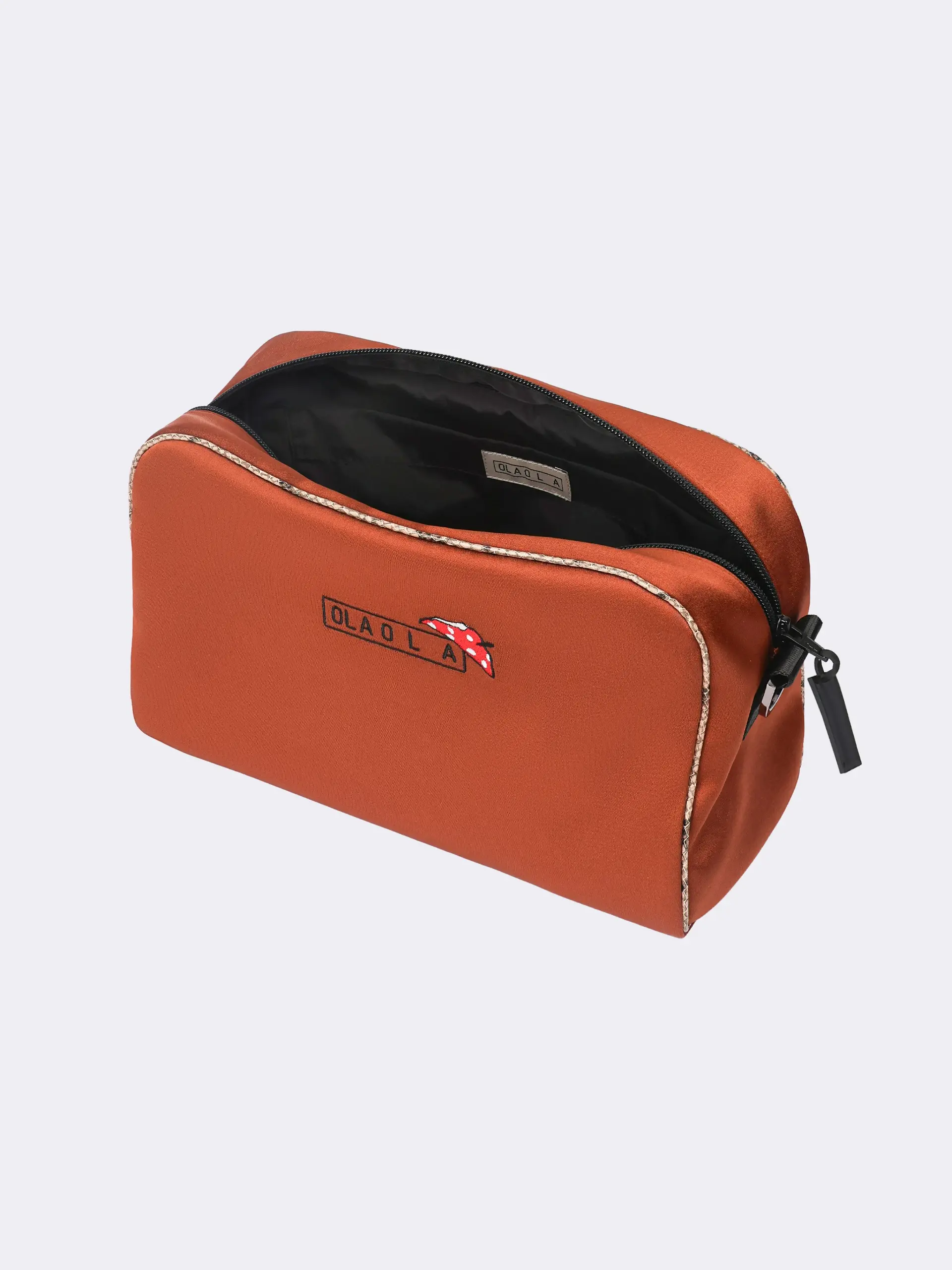 Косметичка на молнии с одним отделением. Выполнена из плотной атласной ткани с вышивками коллекции FW’25-26 в коллаборации с Владимиром Григом. На подкладе. Размер: 20х10 см