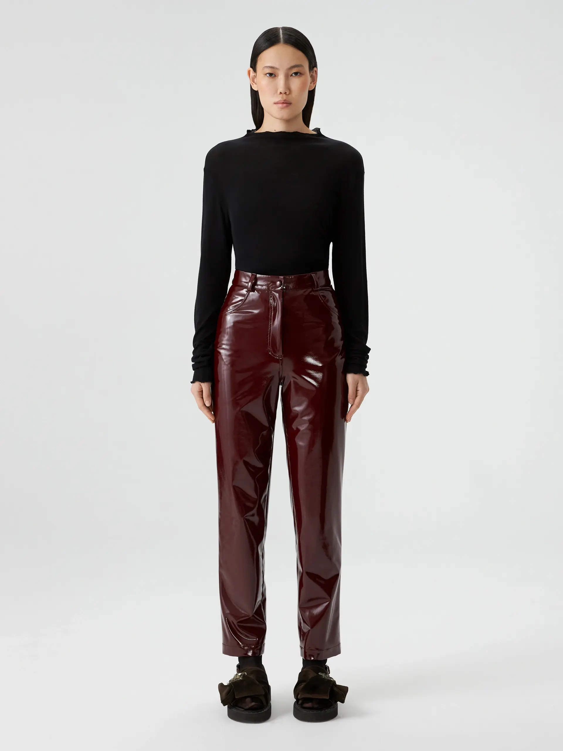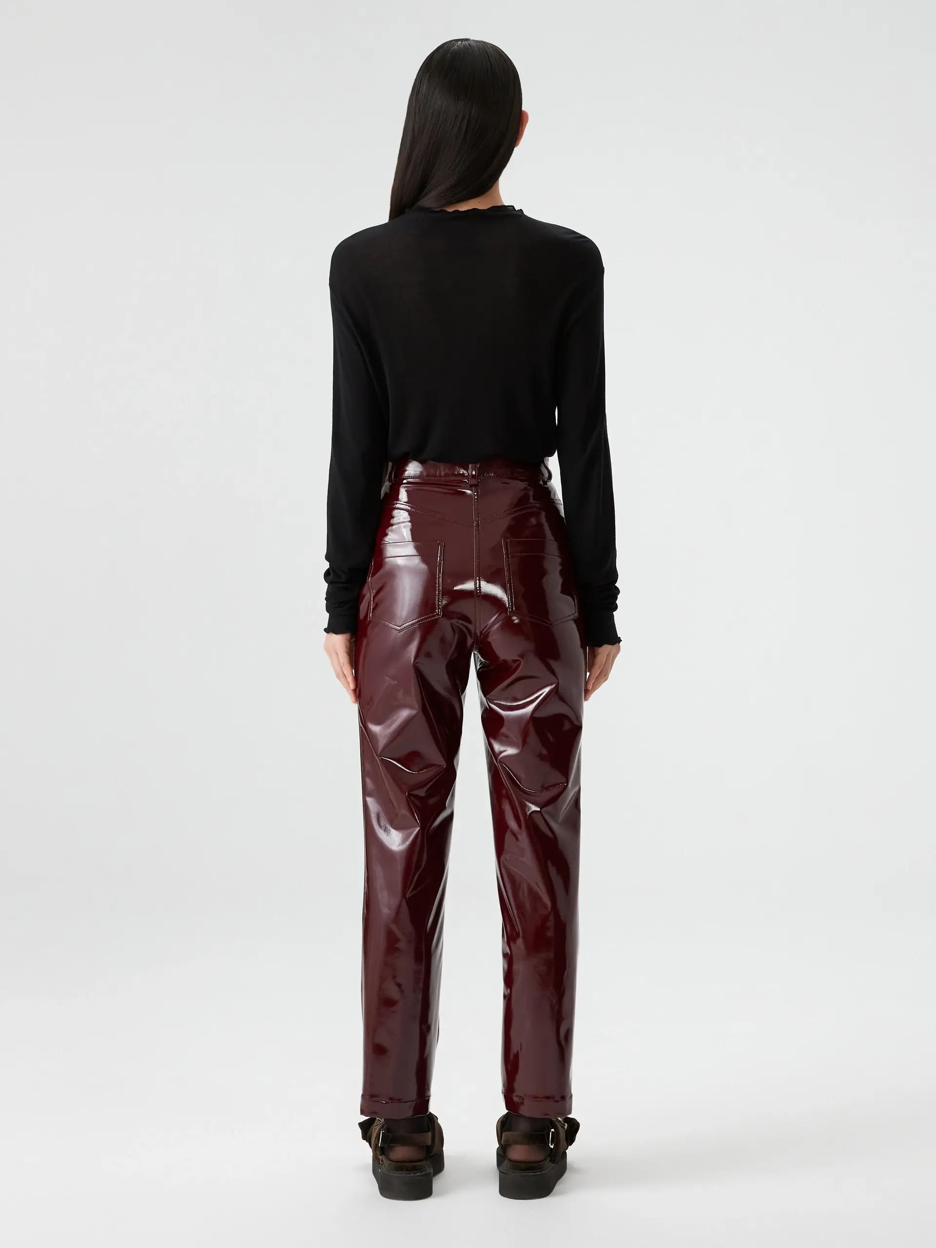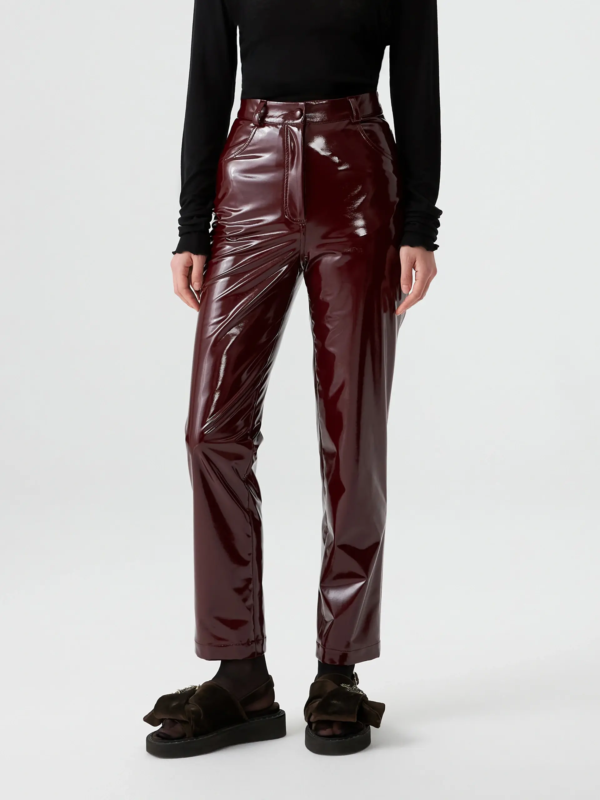 Брюки бордовые из лаке