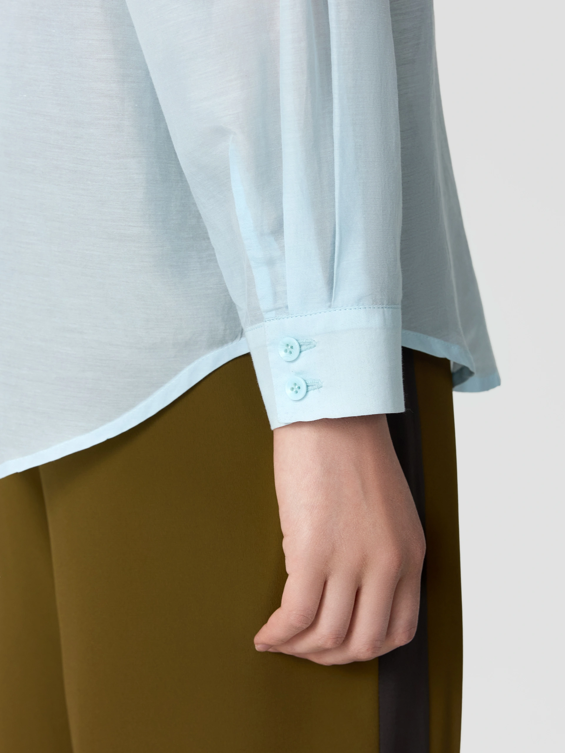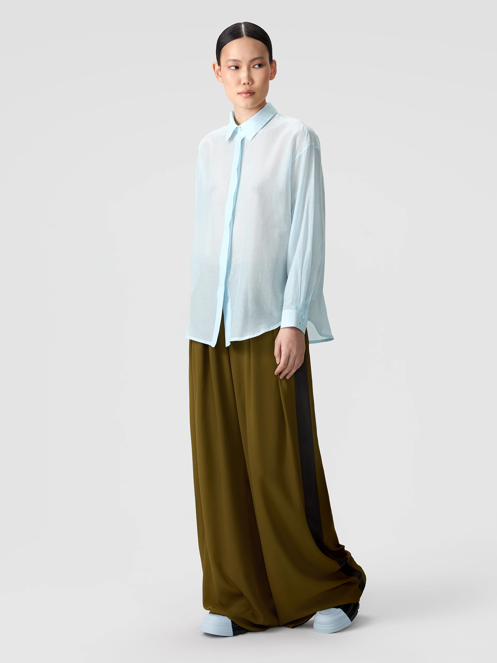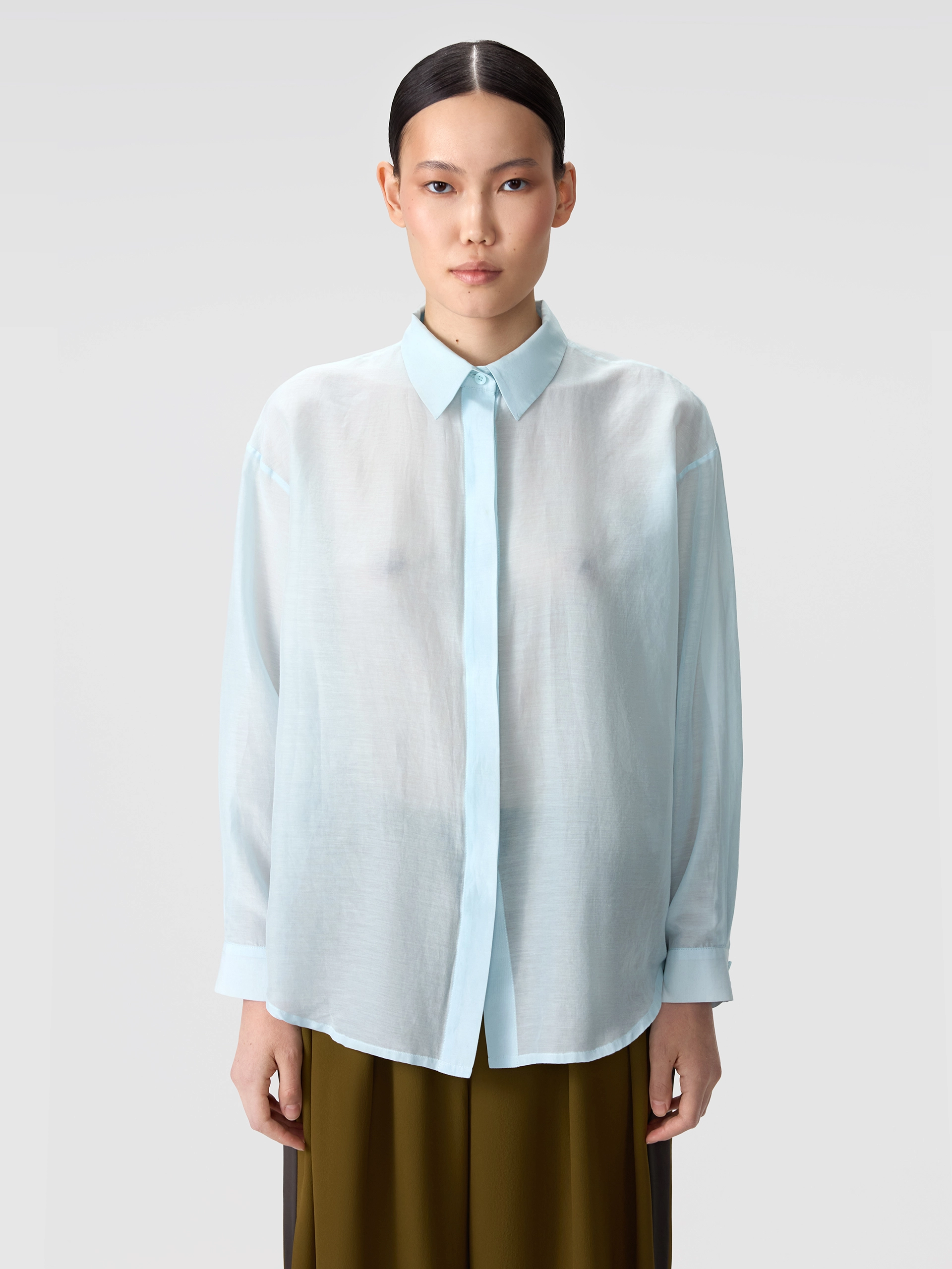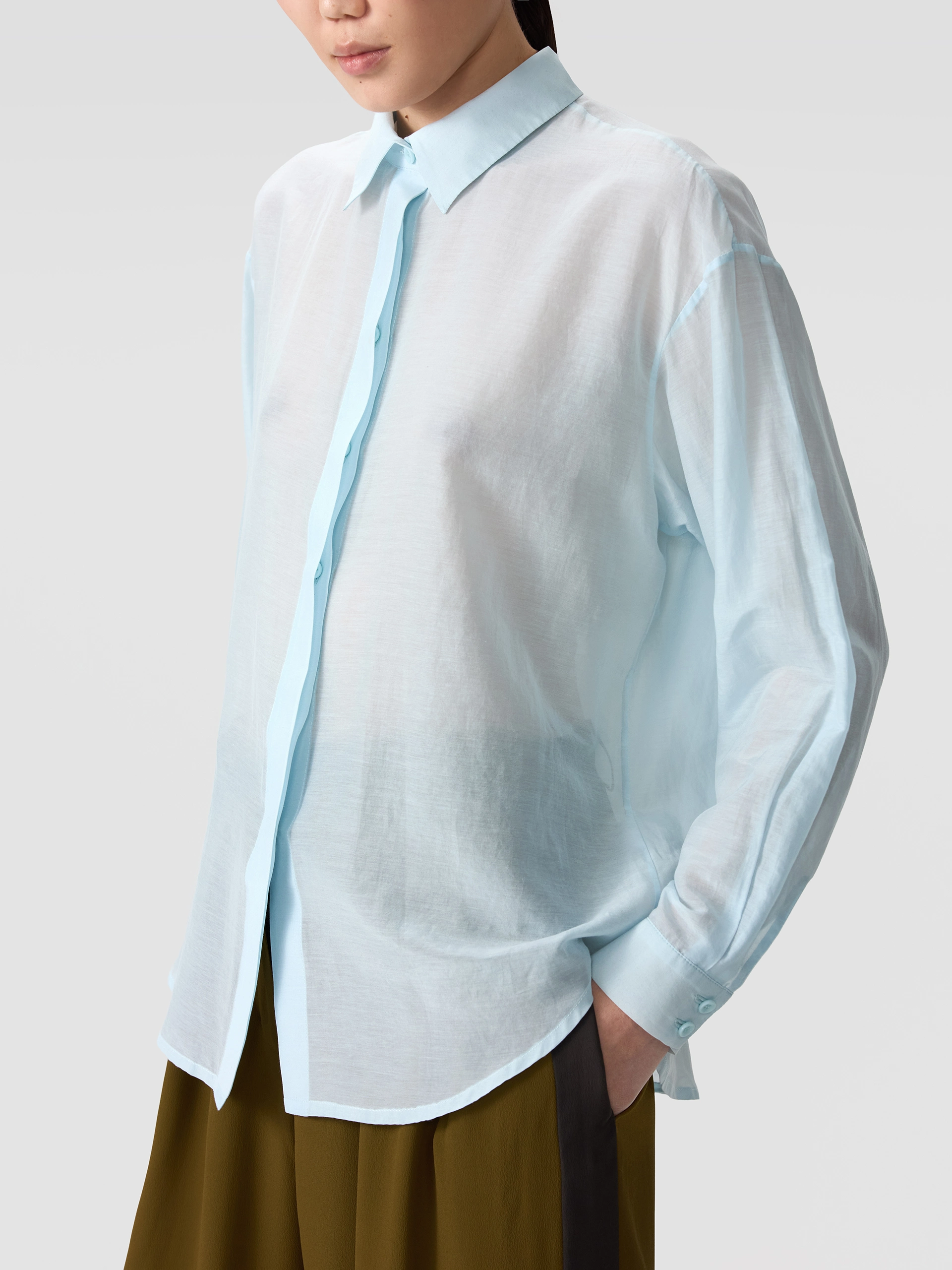 Приталенный жилет из полупрозрачной клетчатой ткани с отрезной линией талии и ярусной баской с контрастными вставками по бокам. Однобортная застежка на пуговицы. Английский воротник.