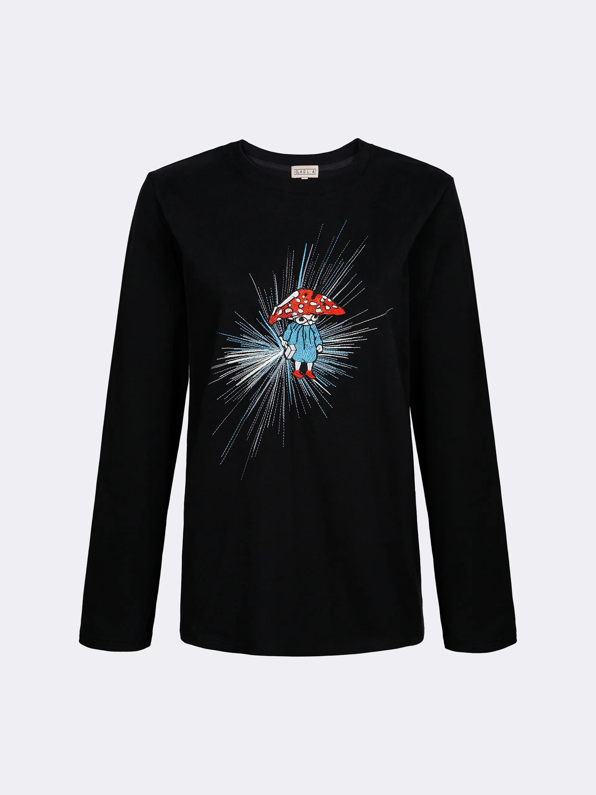 Футболка свободного кроя из хлопка. Лёгкая драпировка на передней части достигается за счёт декоративных вышивок-аппликаций.