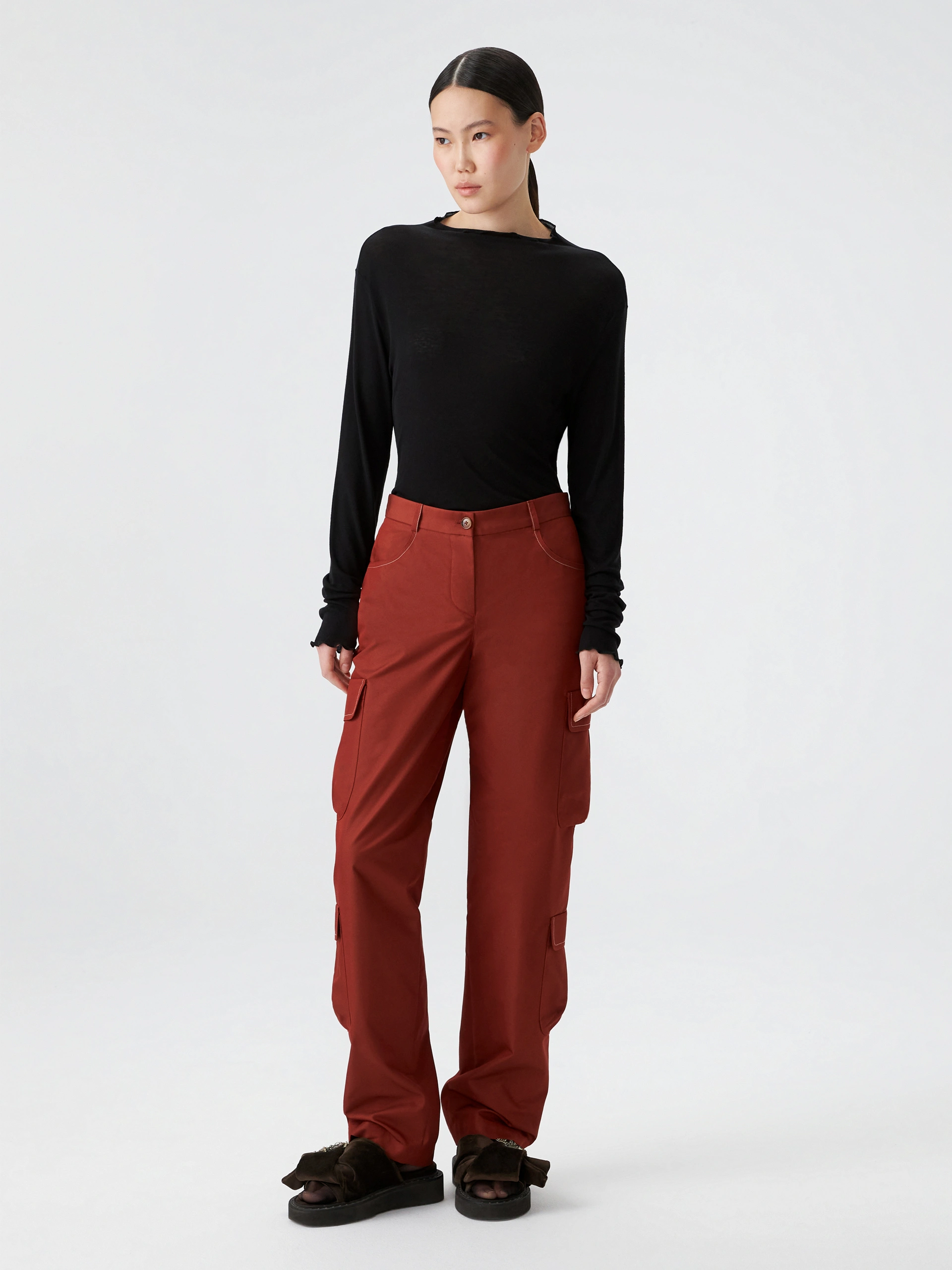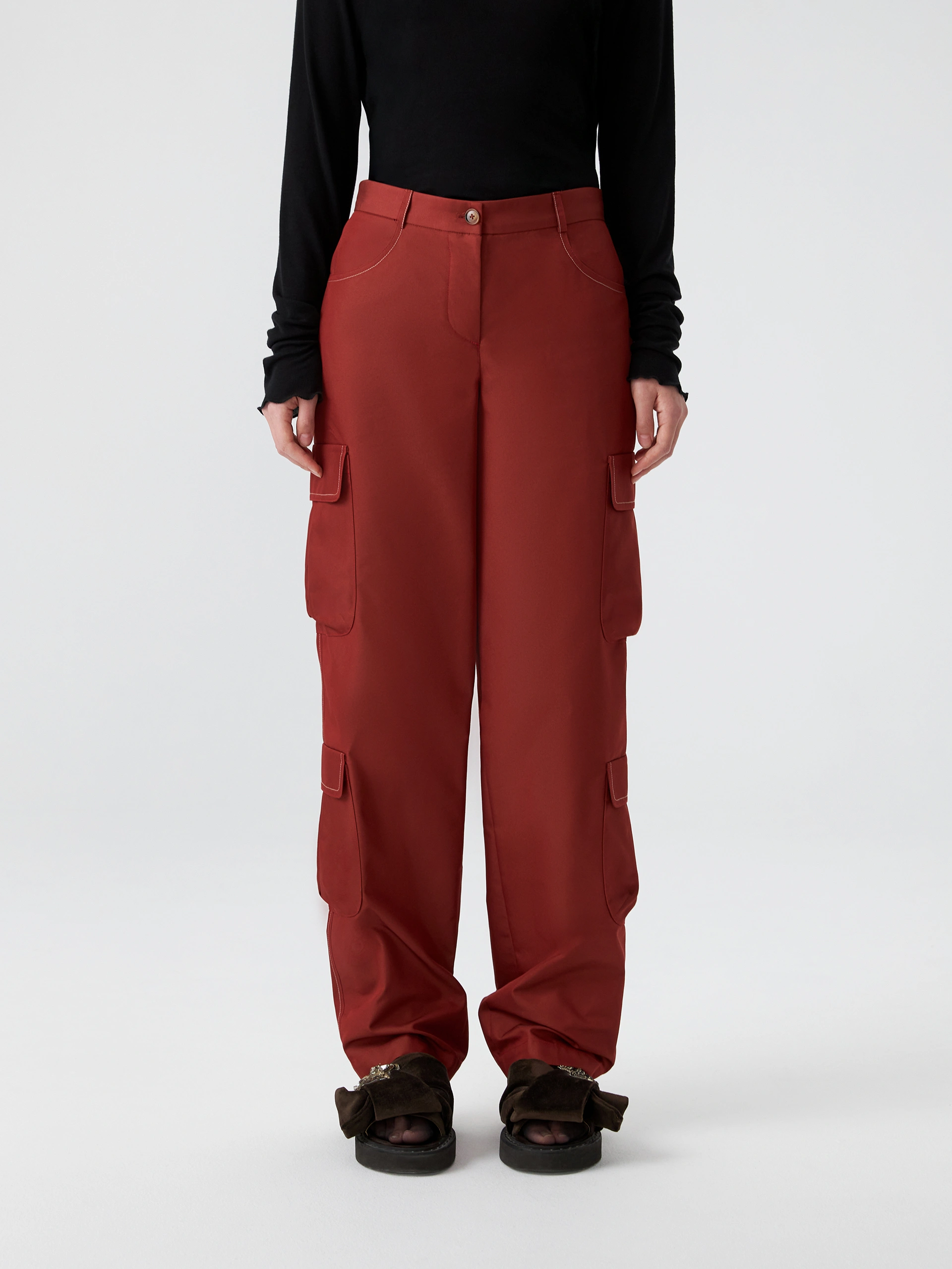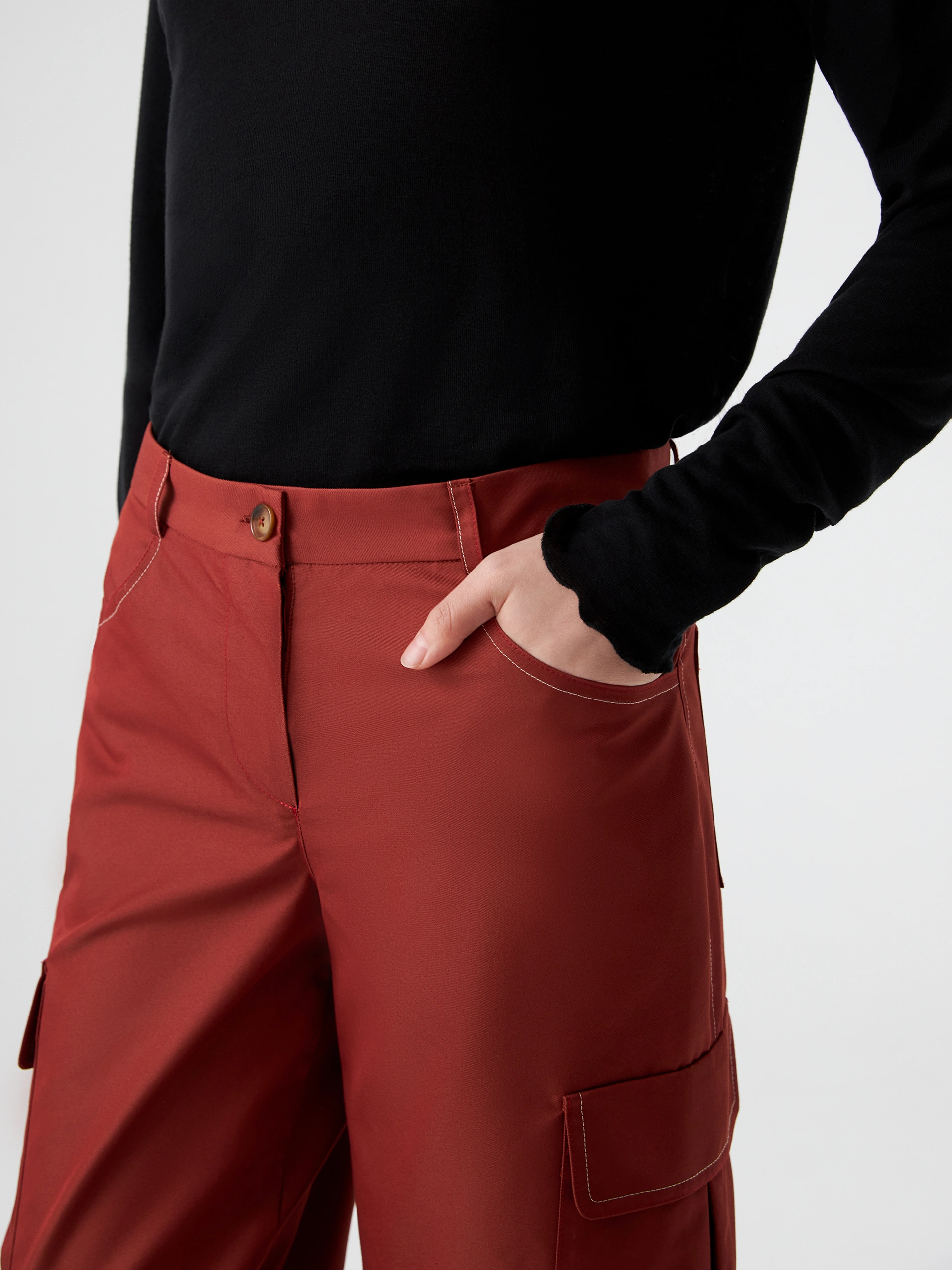 Терракотовый свитшот с карманами на молнии в боковых швах. На полочке напечатан объемный принт.