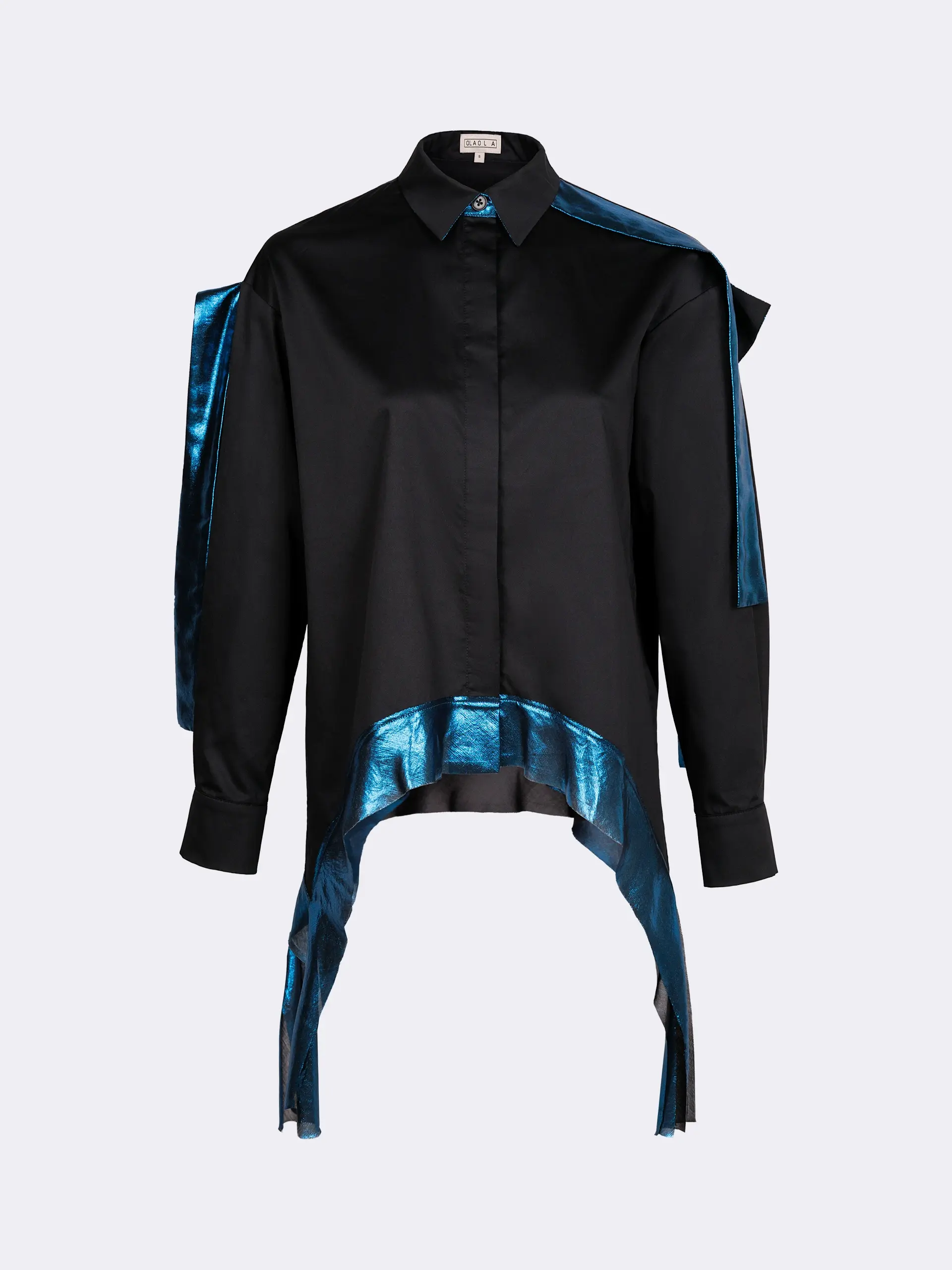 Юбка на запах из лаковой ткани с высокой посадкой. Застёжка на пуговицу внутри и сбоку. Модель на подкладке.