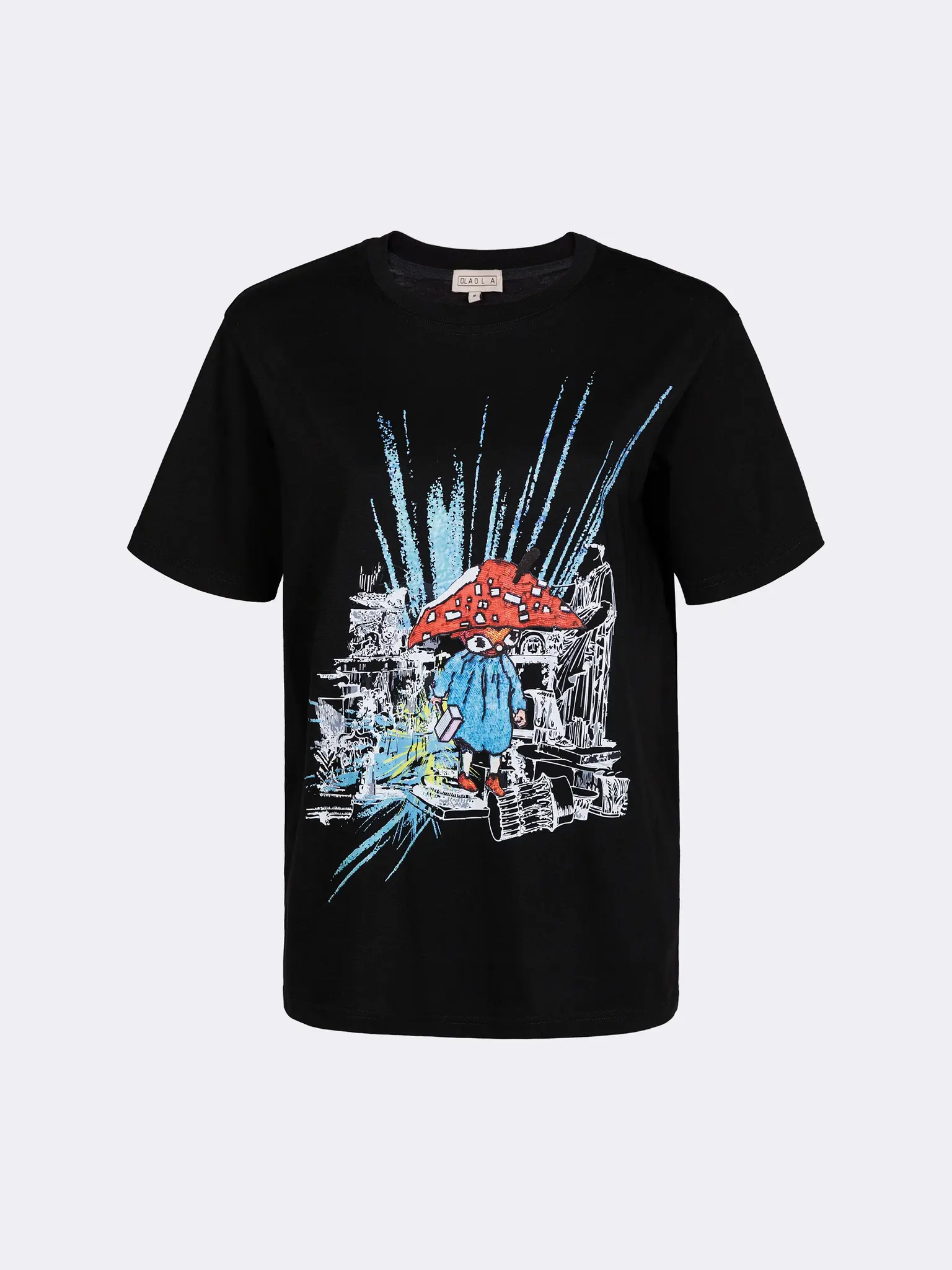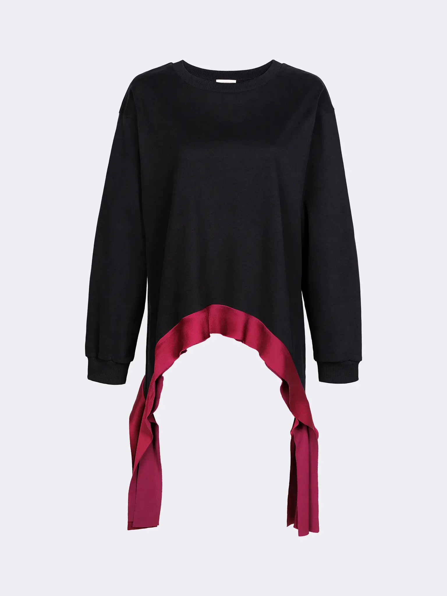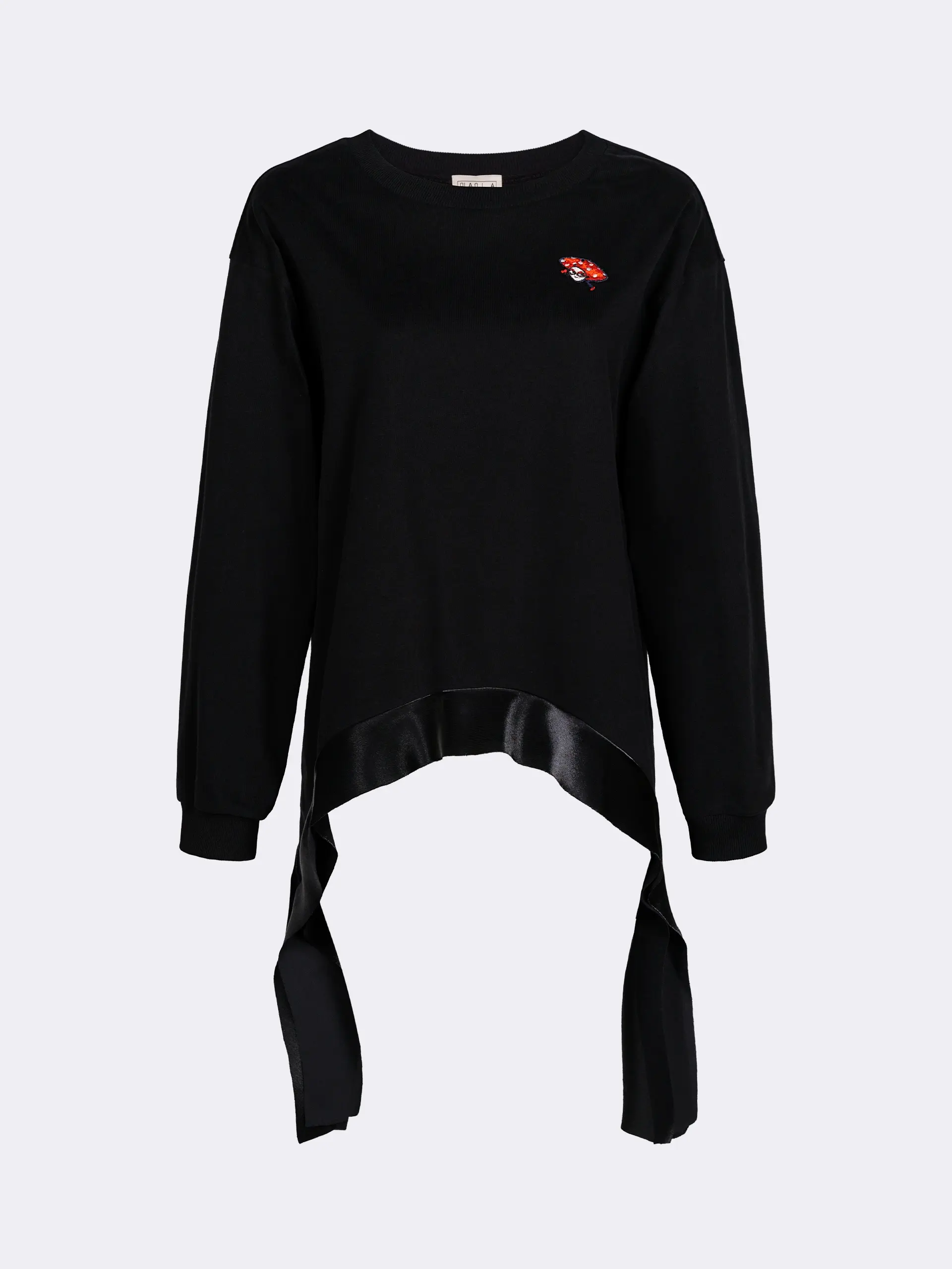 Хлопковый лонгслив с круглой горловиной и спущенной линией плеча. Втачные рукава. Спереди выполнена вышивка — персонаж Напи, созданный художником Владимиром Григом.
