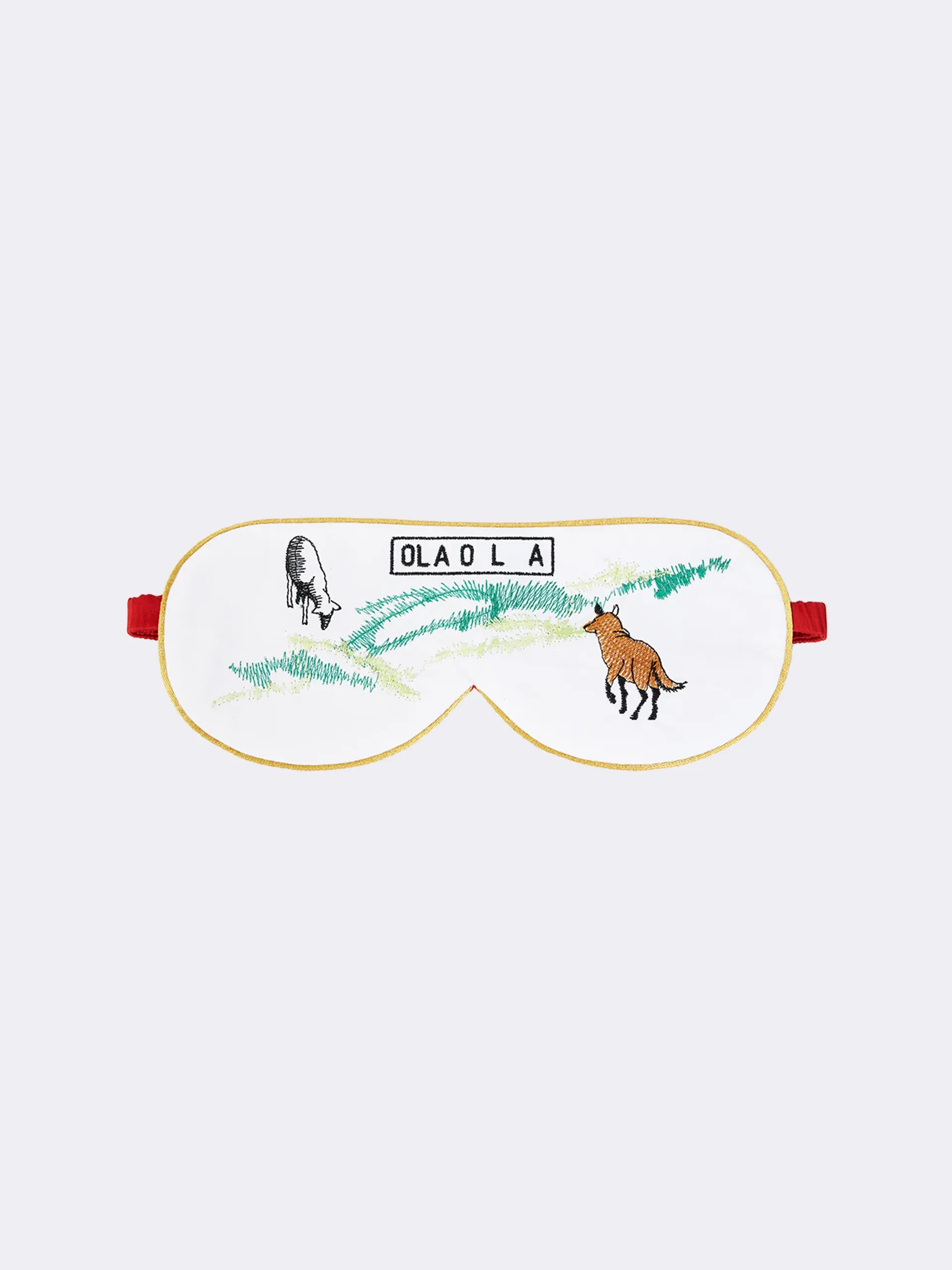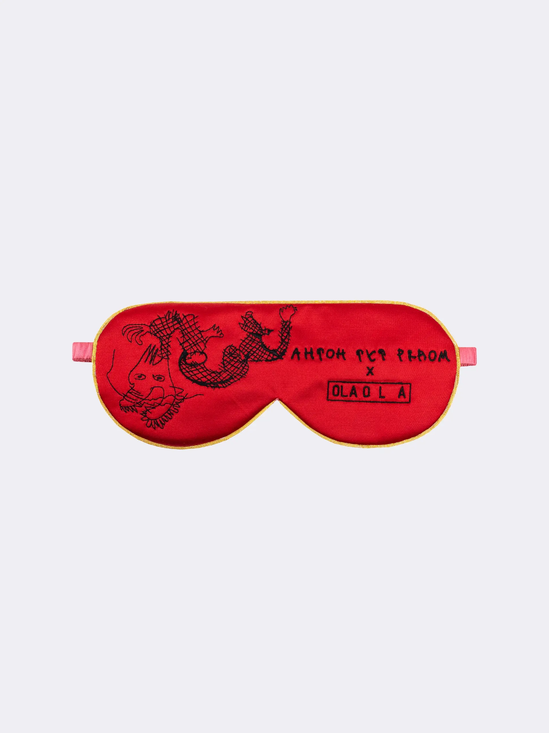 Комфортная маска для сна на резинке с авторским принтом, разработанным дизайнером OLA OLA в рамках коллекции SS'23.