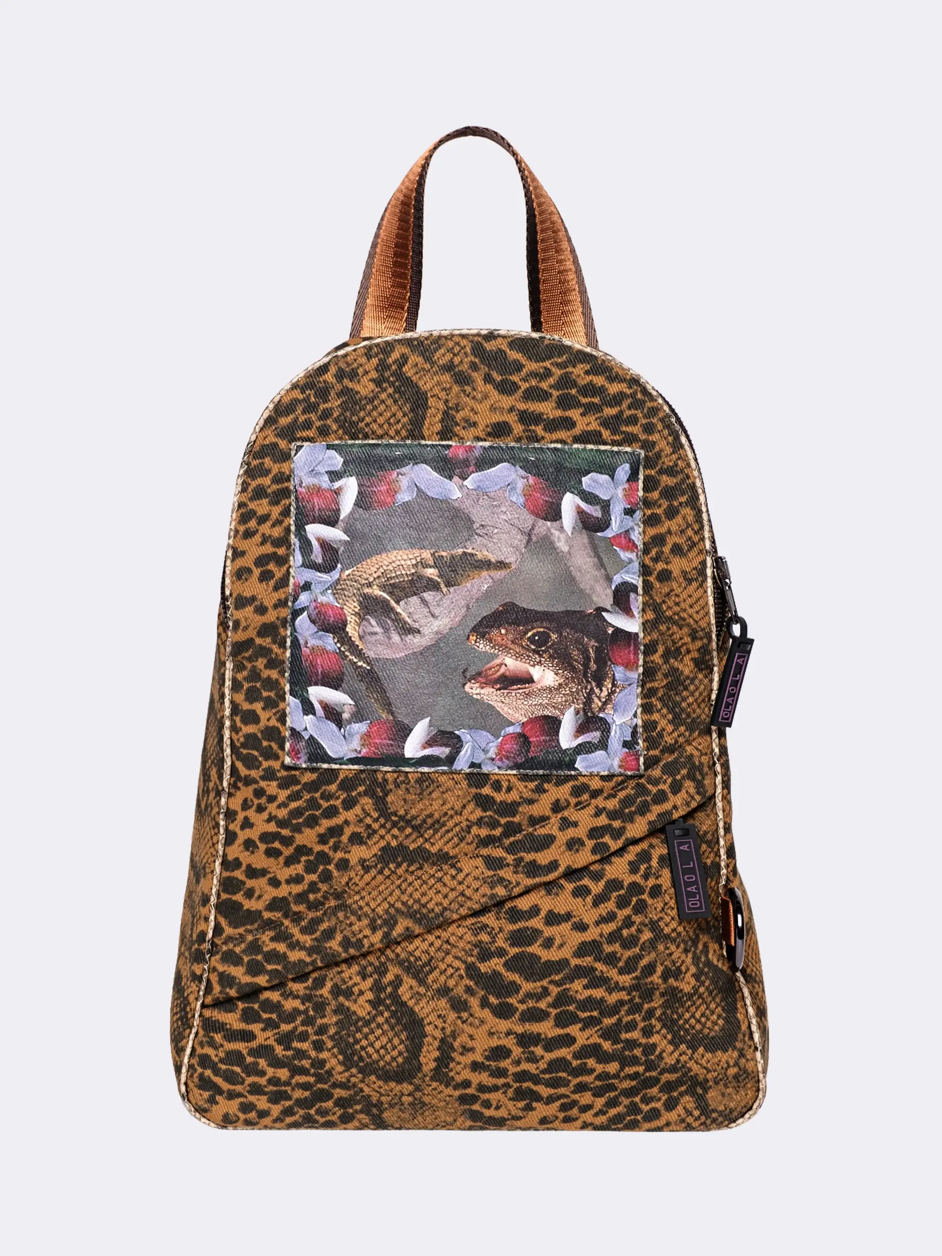 Портфель из экокожи со съёмными лямками. Клапан отделан натуральной кожей пони с анималистичным принтом. 2 отделения, внутренний карман.