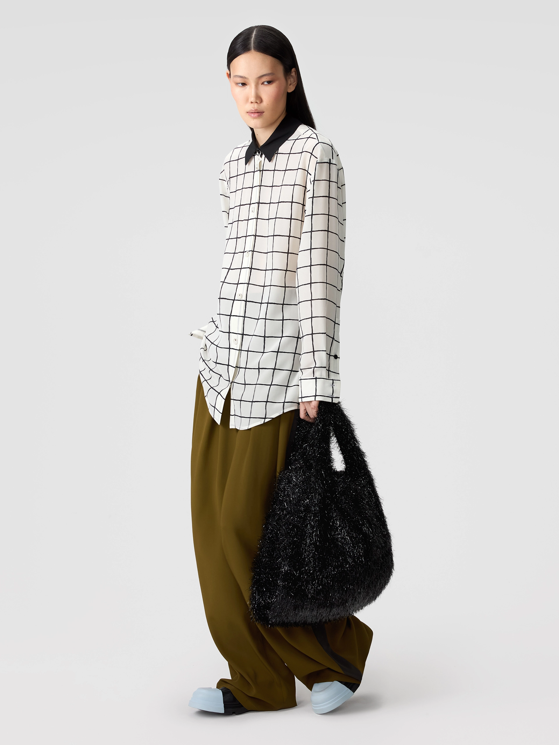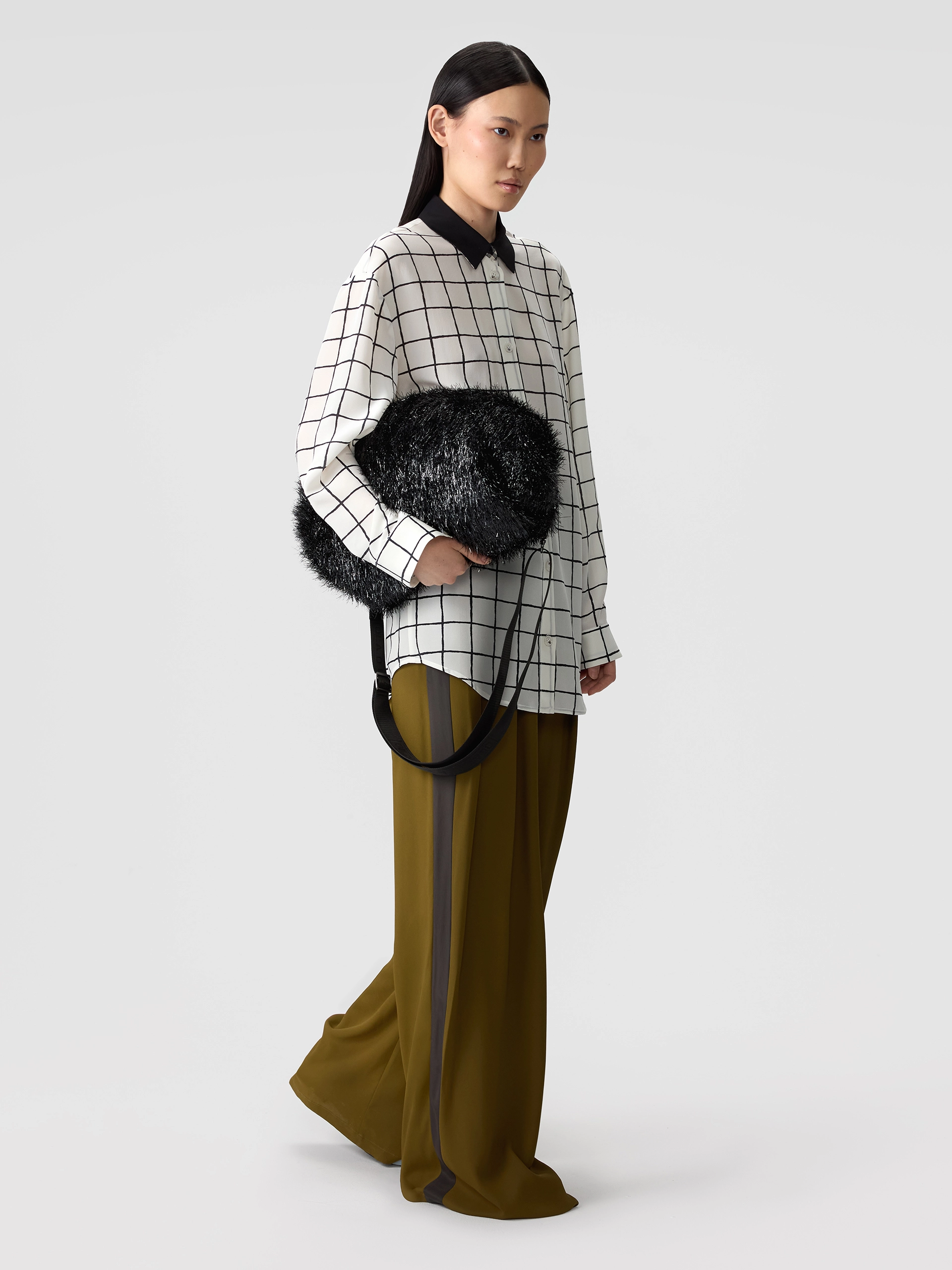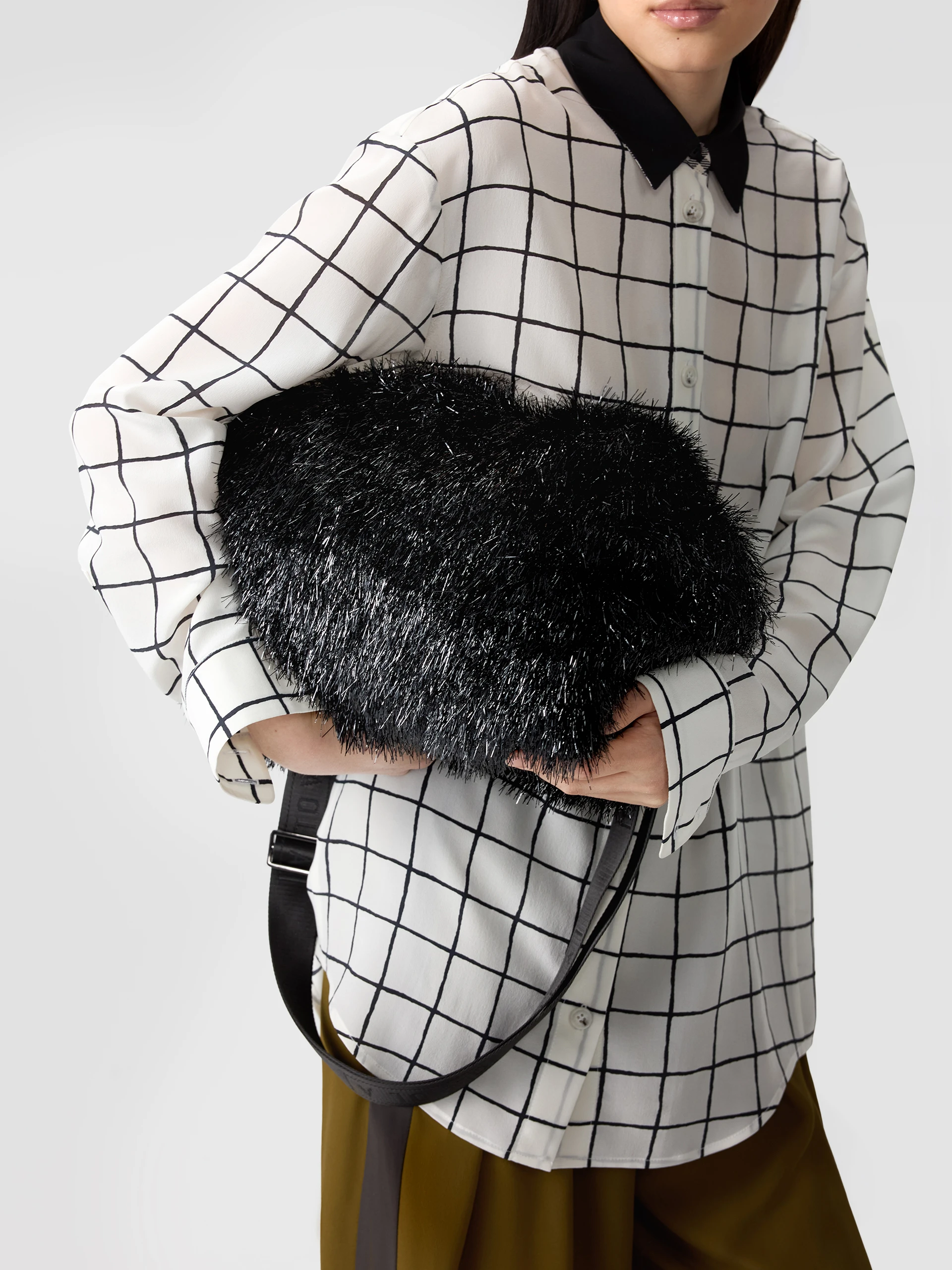 Сумка-пакет из фактурного хлопка с двумя короткими ручками. Застежка на молнию. На подкладе. Внутри один карман. Съемный текстильный ремень из стропы с регулируемой длиной в комплекте. Ремень крепится на карабины.