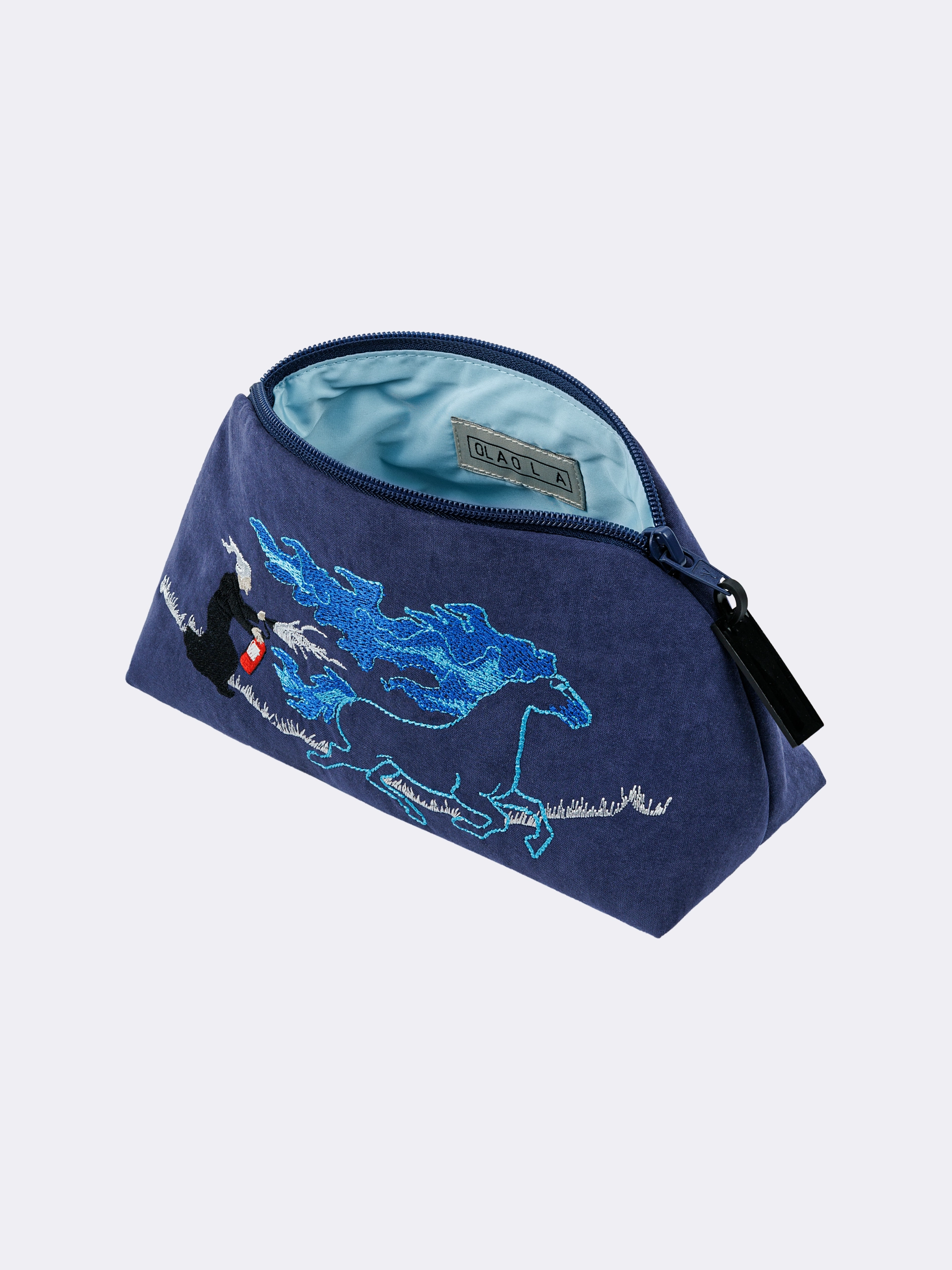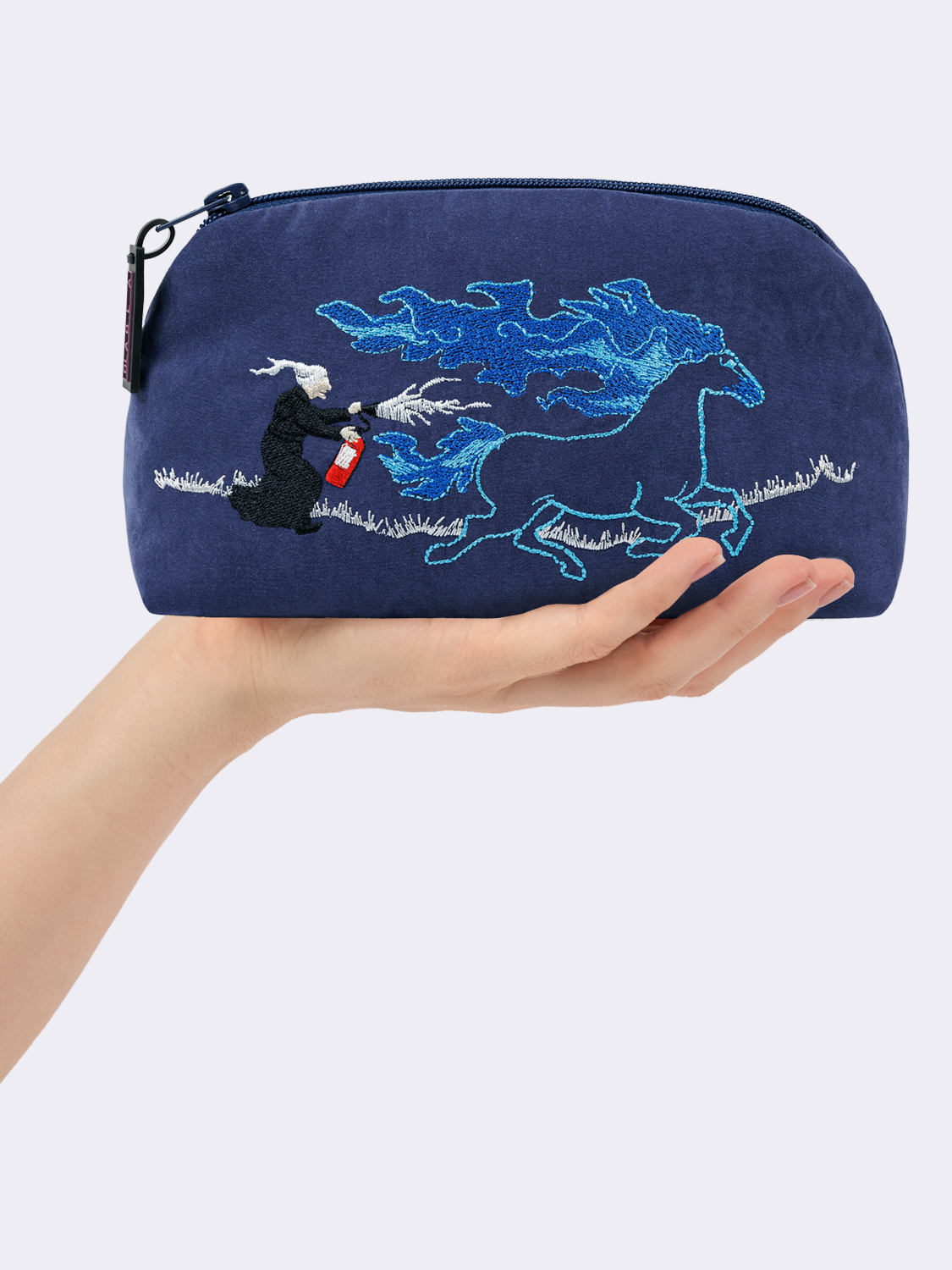 Обложка для паспорта коллаборации OLA OLA × The Blueprint — ремикс русской сказки по мотивам иллюстраций Ивана Билибина. Паспорт украшает вышивка-аллегория наступающего года: пламенный Конь-огонь и народная героиня, усмиряющая хаос с огнетушителем и юмором.