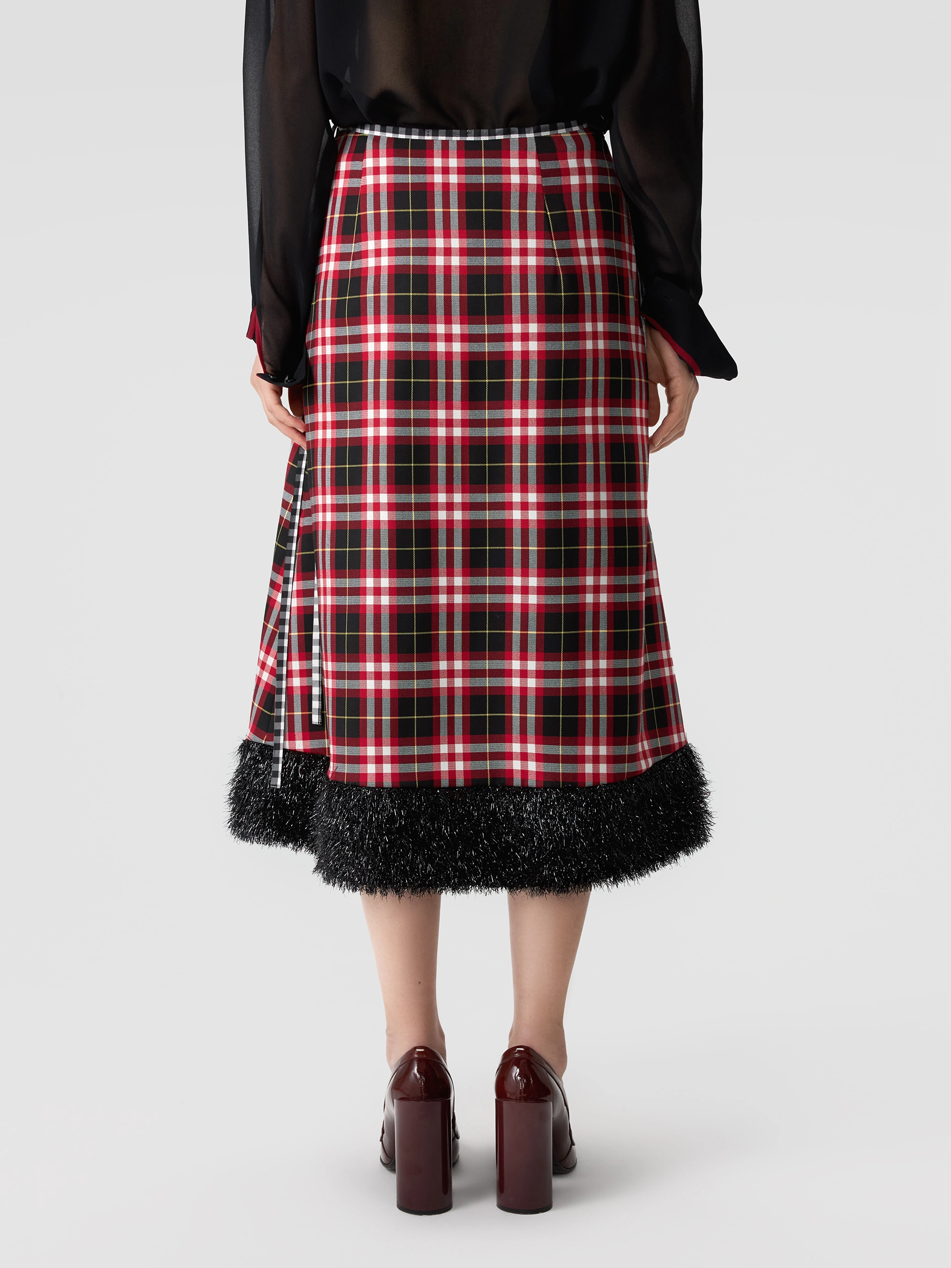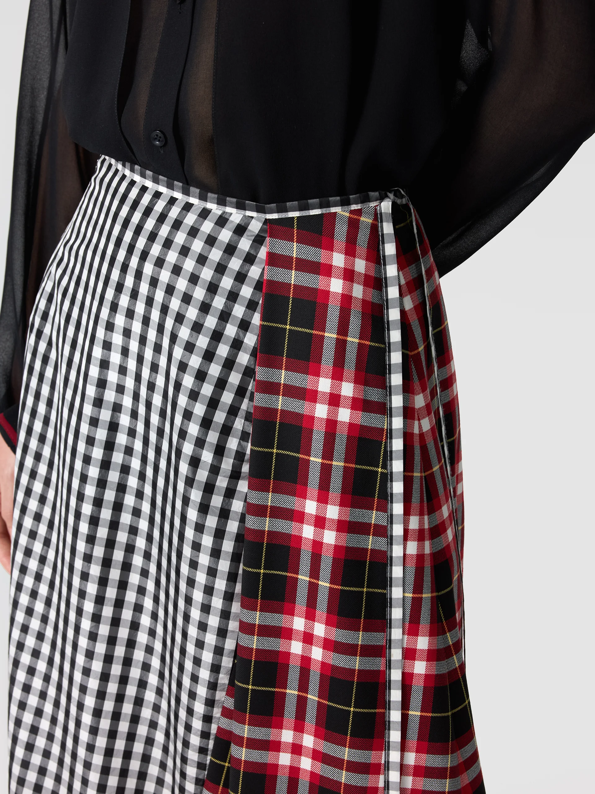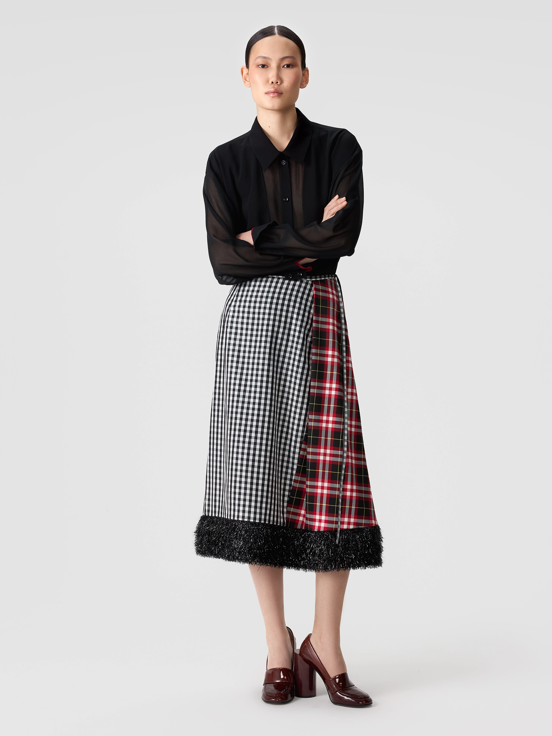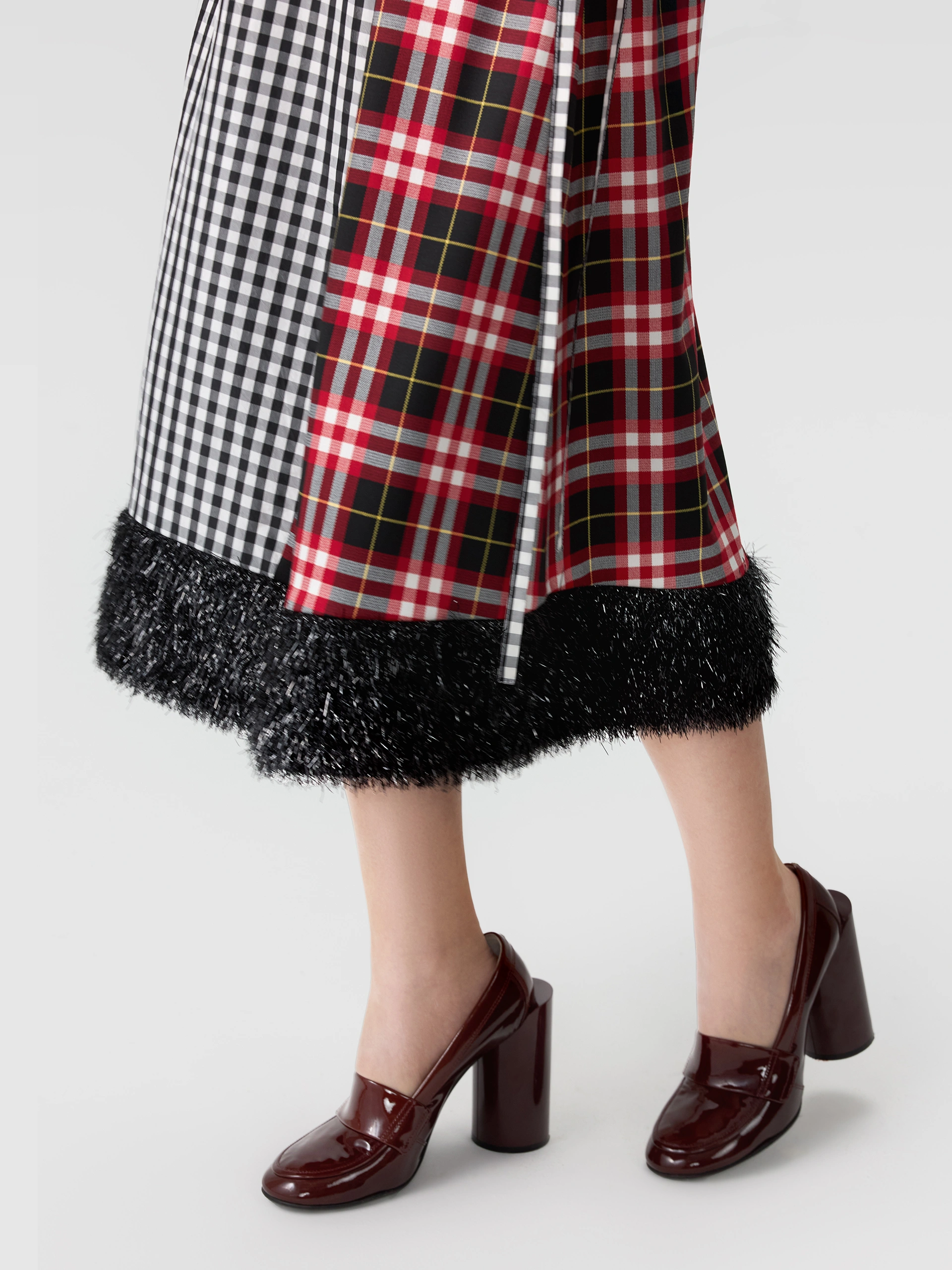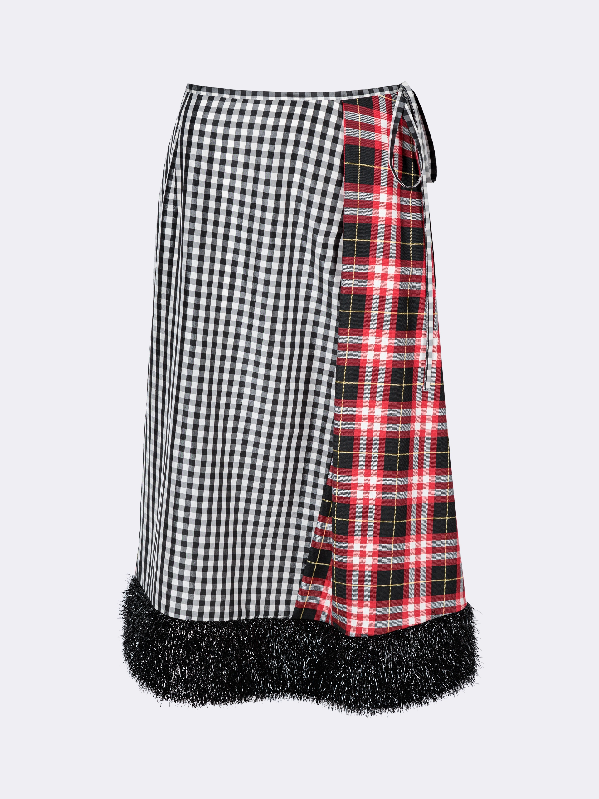 Мини-юбка прямого кроя из фактурного хлопка в клетку. Притачной пояс со шлевками для ремня. Застежка на потайную молнию сзади. Боковые карманы с имитацией клапана по боками.
